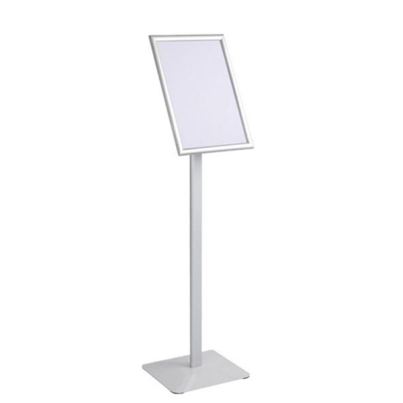 Bảng menu hợp kim nhôm A3 màu trắng PTNW được thiết kế với kích thước mặt bảng 45 x 32,6 cm, vừa vặn cho khổ giấy A3, giúp nội dung hiển thị rõ ràng và thu hút ánh nhìn. Phần đế bảng chắc chắn với kích thước 32 x 28 cm, tổng chiều cao đạt 123 cm, mang lại sự cân đối, dễ dàng đặt tại nhiều vị trí khác nhau như lối vào, quầy lễ tân, nhà hàng, khách sạn hay trung tâm thương mại.
