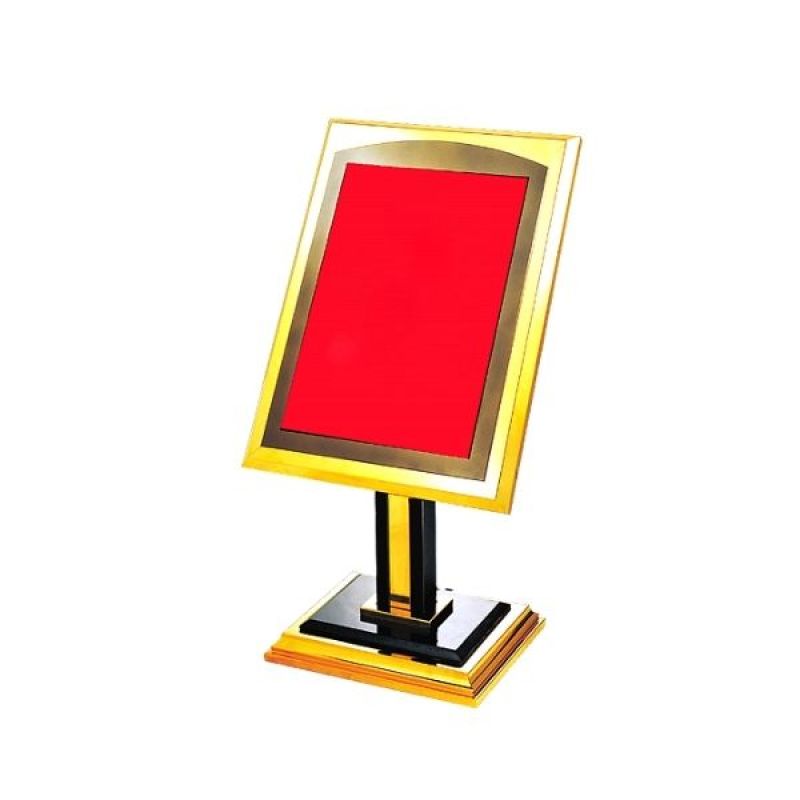 Với sự kết hợp giữa kính trong suốt và khung inox mạ vàng, bảng menu không chỉ là công cụ hiển thị thông tin mà còn là một chi tiết trang trí, góp phần nâng tầm thẩm mỹ cho không gian. Gam màu vàng ánh kim tạo cảm giác cao cấp, phù hợp với những môi trường cần sự tinh tế và sang trọng.
