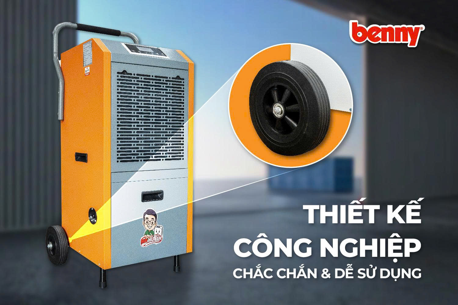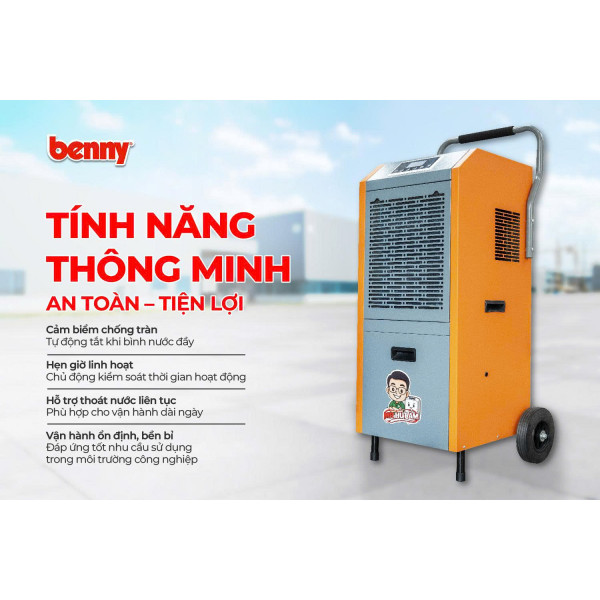 Benny BDH-158 158L là dòng máy hút ẩm công nghiệp công suất lớn, được thiết kế dành cho nhà xưởng, kho hàng, phòng sản xuất, phòng server, tầng hầm hoặc không gian rộng dưới 300m² tùy điều kiện nhiệt độ và độ ẩm môi trường.