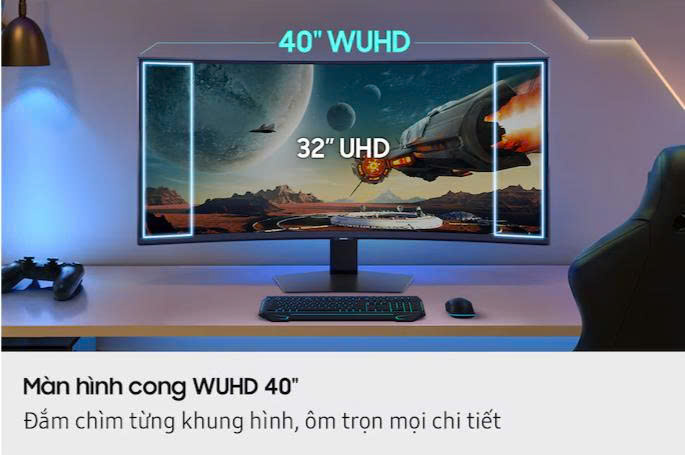 Với kích thước 49 inch, tỉ lệ 32:9 và mật độ điểm ảnh 110 PPI, Odyssey G9 mang lại không gian hiển thị cực rộng, cho phép người chơi quan sát toàn cảnh trong các tựa game chiến thuật hoặc mô phỏng. Thiết kế màn hình cong giúp mở rộng góc nhìn, tạo cảm giác bao trùm, giúp game thủ dễ dàng đưa ra quyết định nhanh chóng và chính xác.