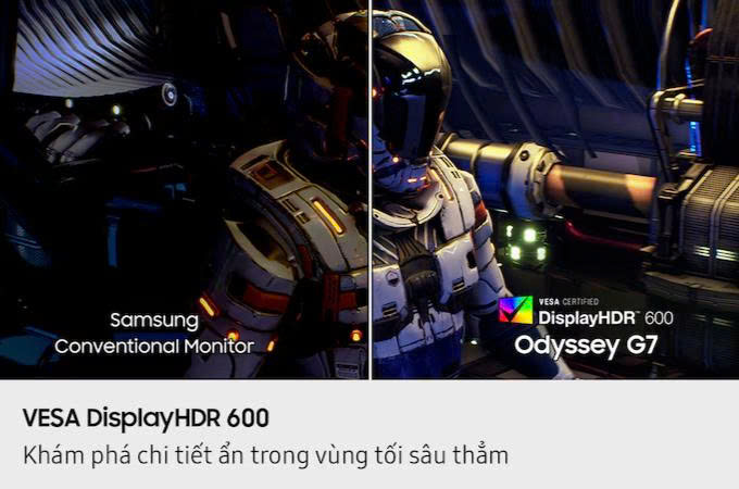 Samsung Odyssey G9 đạt chứng nhận VESA DisplayHDR True Black 400, cho khả năng hiển thị sắc đen sâu và độ tương phản vượt trội. Các gam màu tối được tái hiện rõ nét, tăng cường độ sâu hình ảnh, mang lại trải nghiệm chân thực trong cả những cảnh game thiếu sáng hoặc môi trường ánh sáng phức tạp.