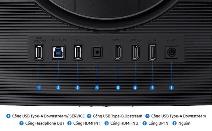 Odyssey G9 LS49DG910SEXXV sở hữu nhiều cổng kết nối hiện đại như HDMI 2.1, Micro HDMI, DisplayPort và USB-C, dễ dàng kết nối với nhiều thiết bị khác nhau. Các tính năng Picture-in-Picture (PIP) và Picture-by-Picture (PBP) hỗ trợ hiển thị đa cửa sổ, cho phép vừa chơi game, vừa xem livestream hoặc làm việc đa nhiệm tiện lợi.