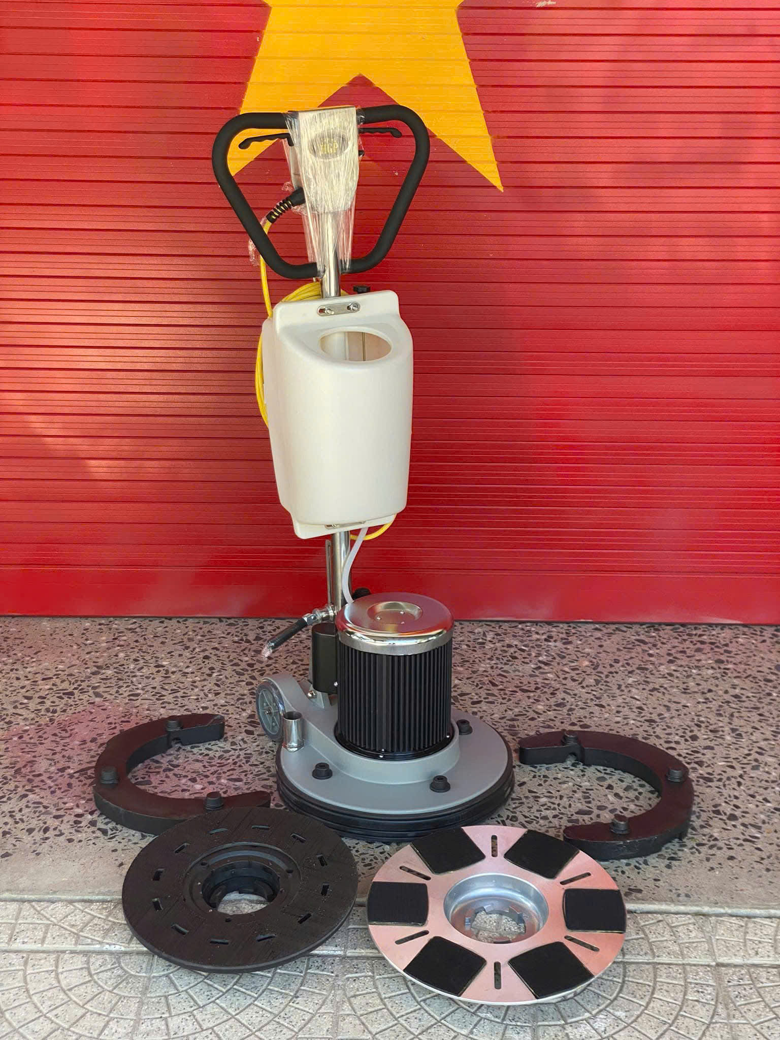 Karva KVG-17F1 được trang bị sẵn mâm gang, tạ sắt và mâm gai, giúp mở rộng khả năng sử dụng cho nhiều mục đích khác nhau như chà sàn, đánh bóng đá, vệ sinh sàn cứng. Người dùng có thể linh hoạt thay đổi phụ kiện để phù hợp với từng loại bề mặt và yêu cầu thi công.