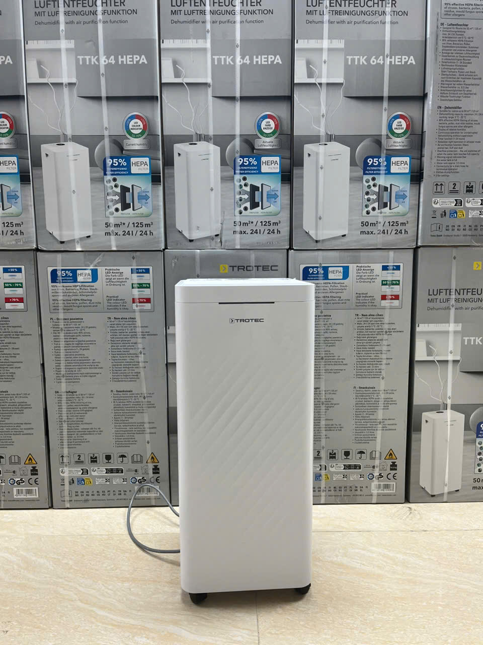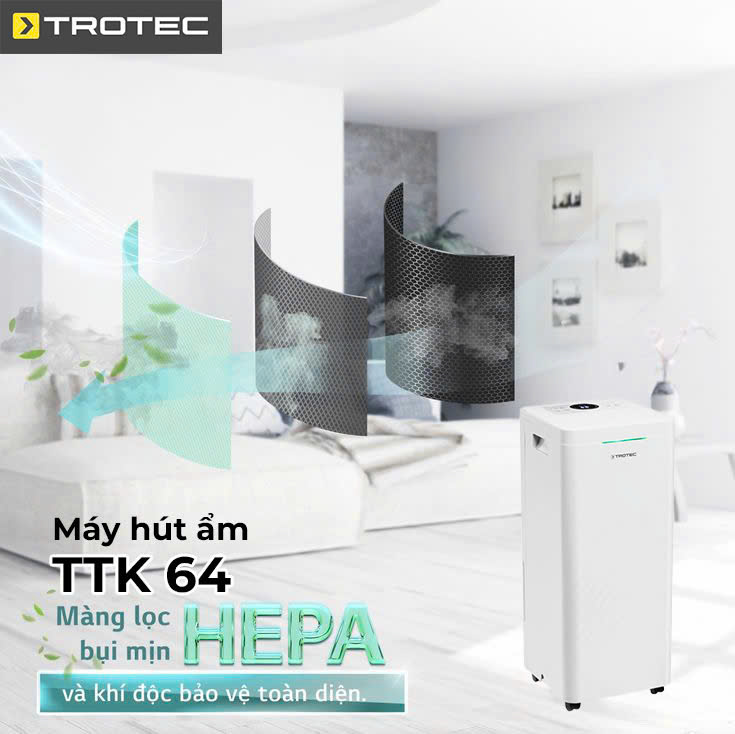Với công suất hút ẩm mạnh mẽ và hệ thống lọc HEPA tiên tiến, Trotec TTK64 HEPA không chỉ giúp không gian khô thoáng mà còn bảo vệ sức khỏe gia đình khỏi bụi mịn và tác nhân gây dị ứng.