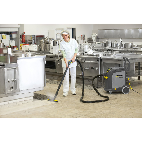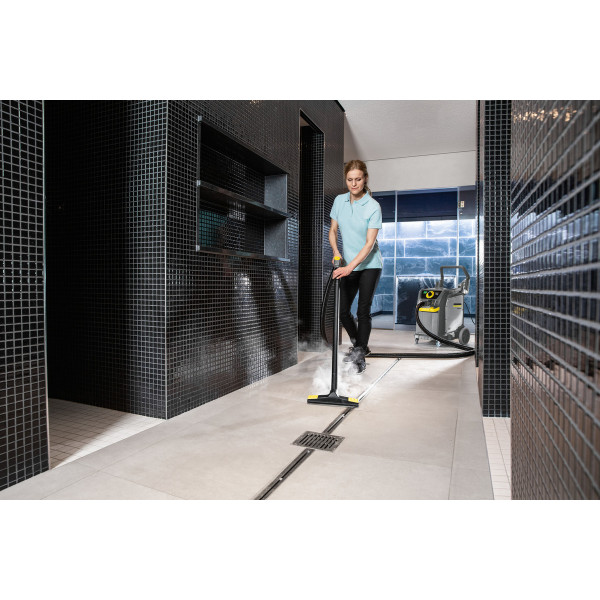 Máy được tích hợp chức năng phun hơi nước nóng và hút khô/ướt đồng thời, giúp sàn khô ráo ngay sau khi vệ sinh. Dung tích bình nước sạch 5,6L và bình nước bẩn 5L, kết hợp dây điện 7,5 m, giúp làm việc linh hoạt ở khu vực rộng lớn. Phụ kiện đi kèm đa dạng: bàn hút sàn, vòi phun tay, đầu phun góc, chổi tròn… giúp làm sạch từ sàn nhà đến thiết bị máy móc, nội thất.