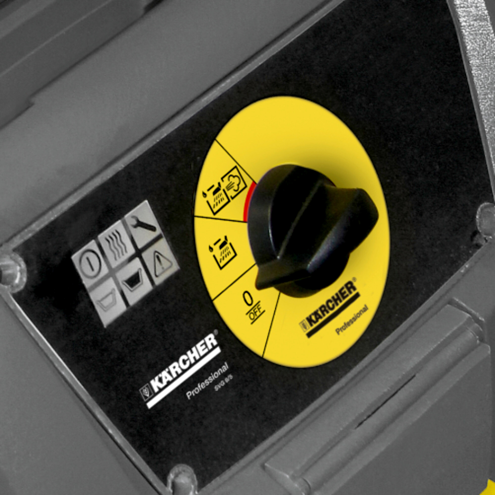 Máy được trang bị bảng điều khiển EASY Operation và màn hình LED hiển thị rõ ràng trạng thái hoạt động. Người dùng có thể lựa chọn 3 chế độ hơi nước/hút bụi chỉ bằng núm xoay - cực kỳ tiện lợi và thân thiện. Tay cầm có thể điều chỉnh lưu lượng hơi nước ba cấp độ, giúp làm sạch mọi loại vết bẩn, từ nhẹ đến bám cứng.