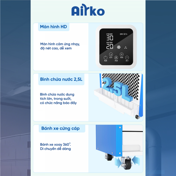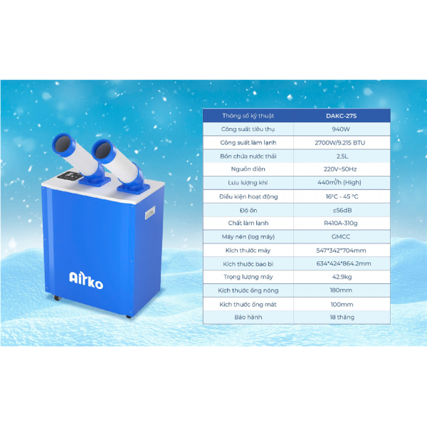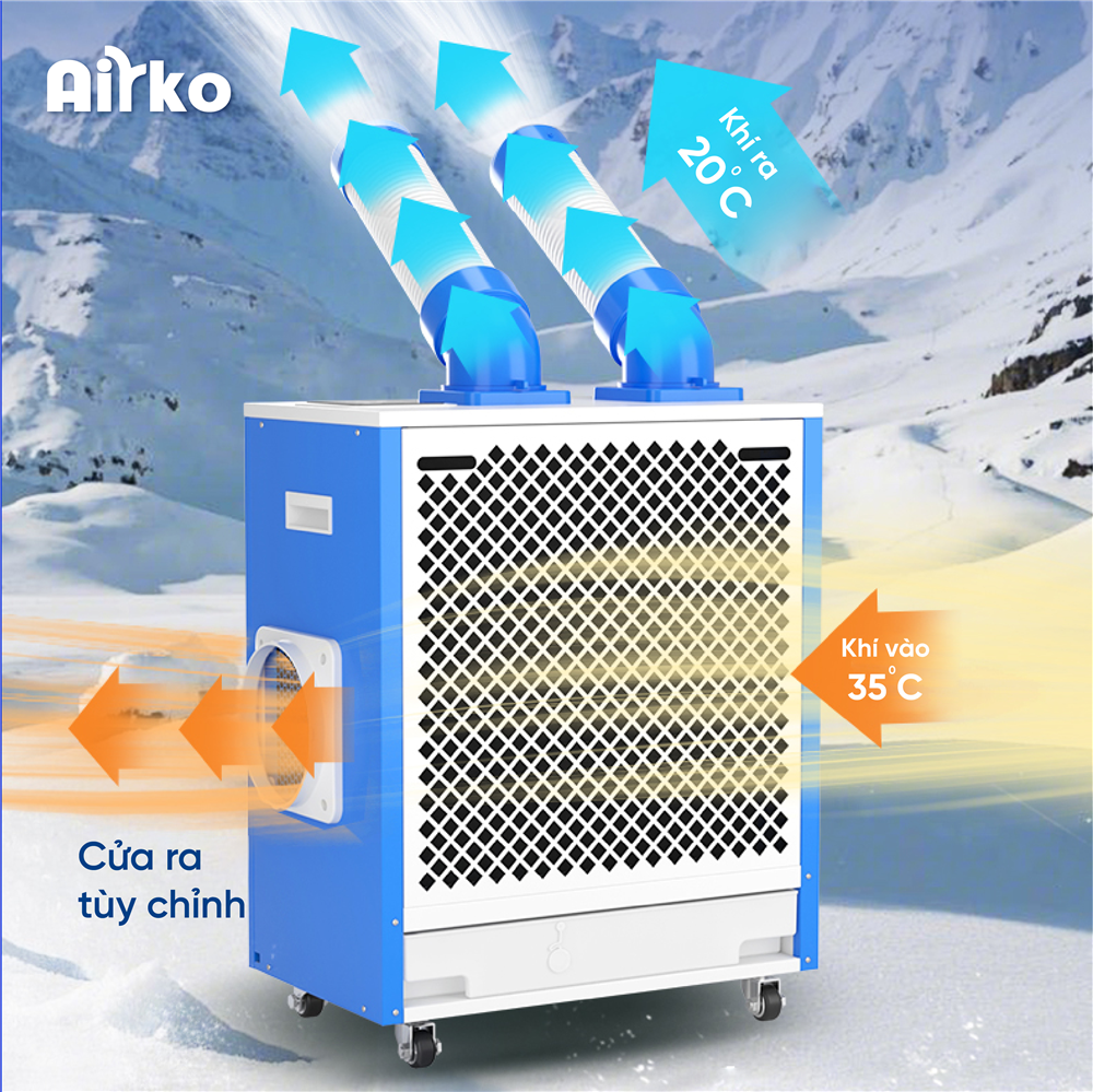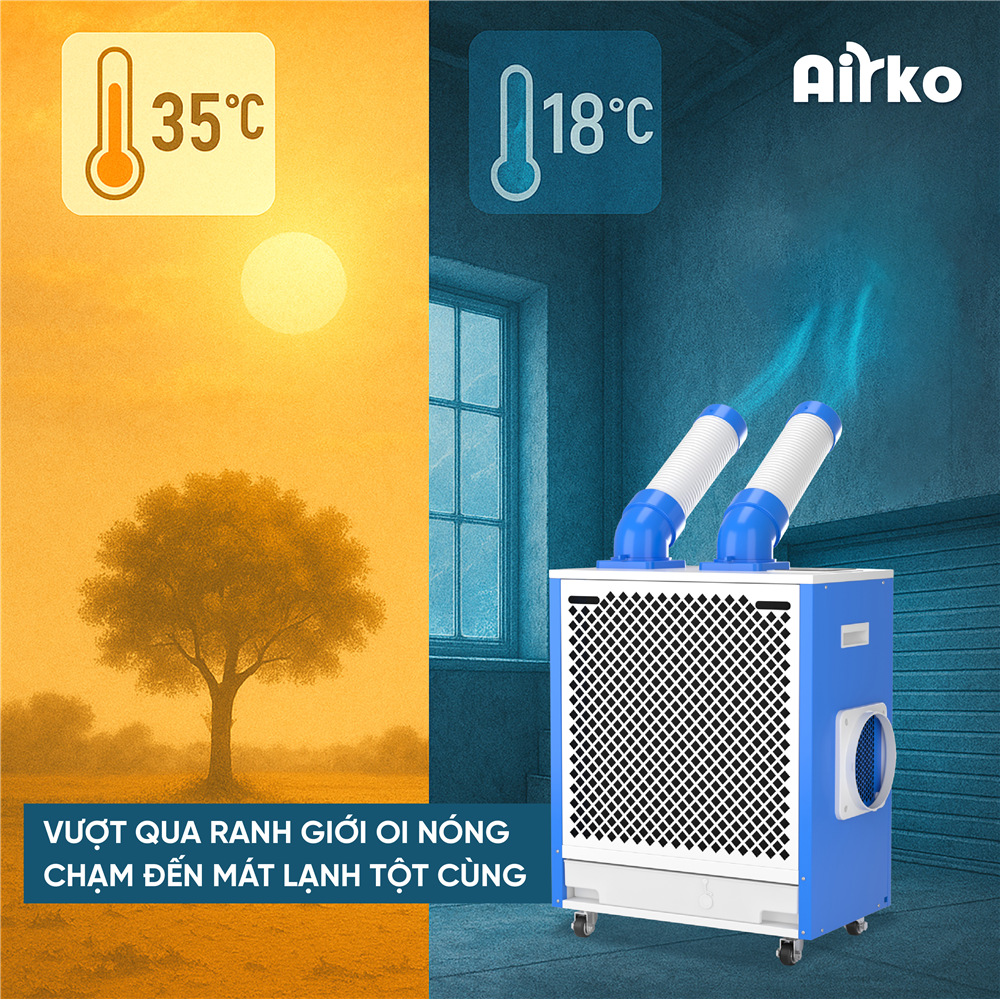 Trong điều kiện khí hậu nắng nóng kéo dài, đặc biệt tại các xưởng sản xuất, nhà máy, kho bãi hoặc sự kiện ngoài trời, máy lạnh di động công nghiệp Airko DAKC-27S trở thành lựa chọn lý tưởng để duy trì môi trường làm việc mát mẻ, thoáng đãng và ổn định. Với thiết kế gọn gàng, khả năng làm lạnh mạnh mẽ cùng tính cơ động cao, thiết bị này ngày càng được ưa chuộng trong nhiều ngành nghề hiện đại.