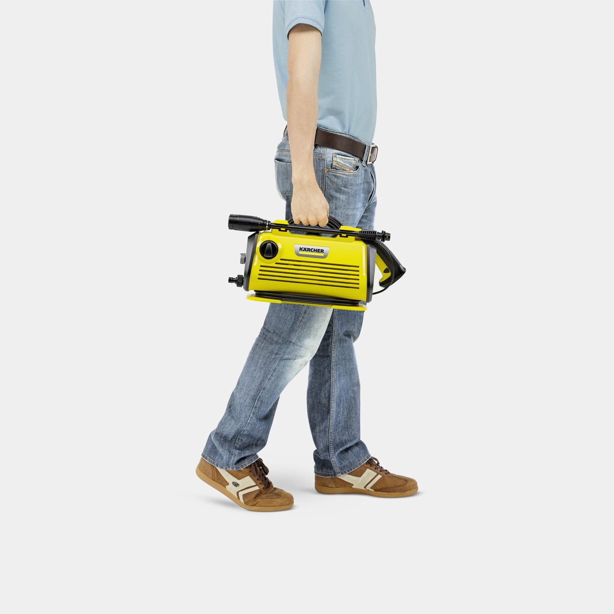 Không giống các dòng máy đứng cồng kềnh, máy phun rửa áp lực cao Karcher K 3 Horizontal Plus có thiết kế nằm ngang, giúp vận hành ổn định, không bị lật khi kéo dây. Trọng lượng chỉ 3,6kg (chưa phụ kiện), đi kèm tay cầm chắc chắn và dây điện dài 5m, giúp di chuyển linh hoạt trong quá trình sử dụng. Kích thước nhỏ gọn 380 x 197 x 264 mm phù hợp cho mọi không gian lưu trữ, từ căn hộ đến nhà phố.