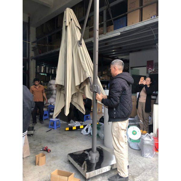 Ô DÙ NGOÀI TRỜI 3M LỆCH TÂM VUÔNG KHUNG NHÔM MÀU KAKI HTO3V-LT-K – SANG TRỌNG, BỀN ĐẸP VÀ CHỐNG NẮNG TỐI ƯU