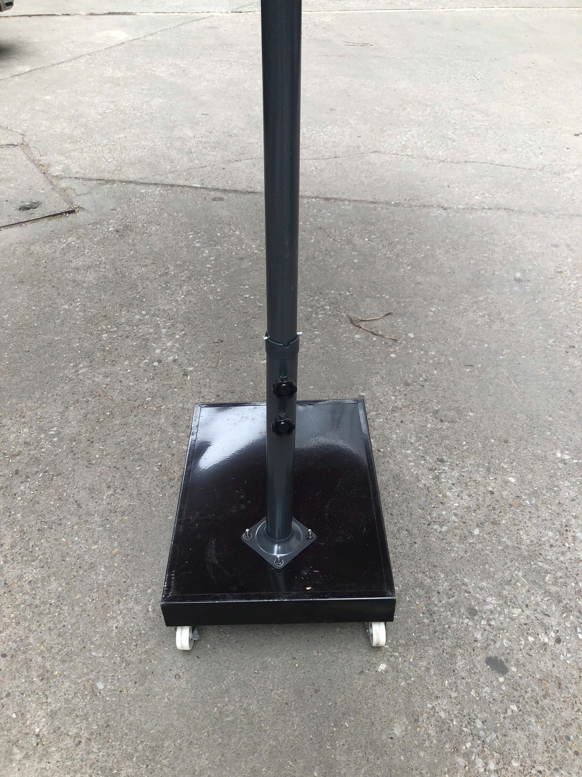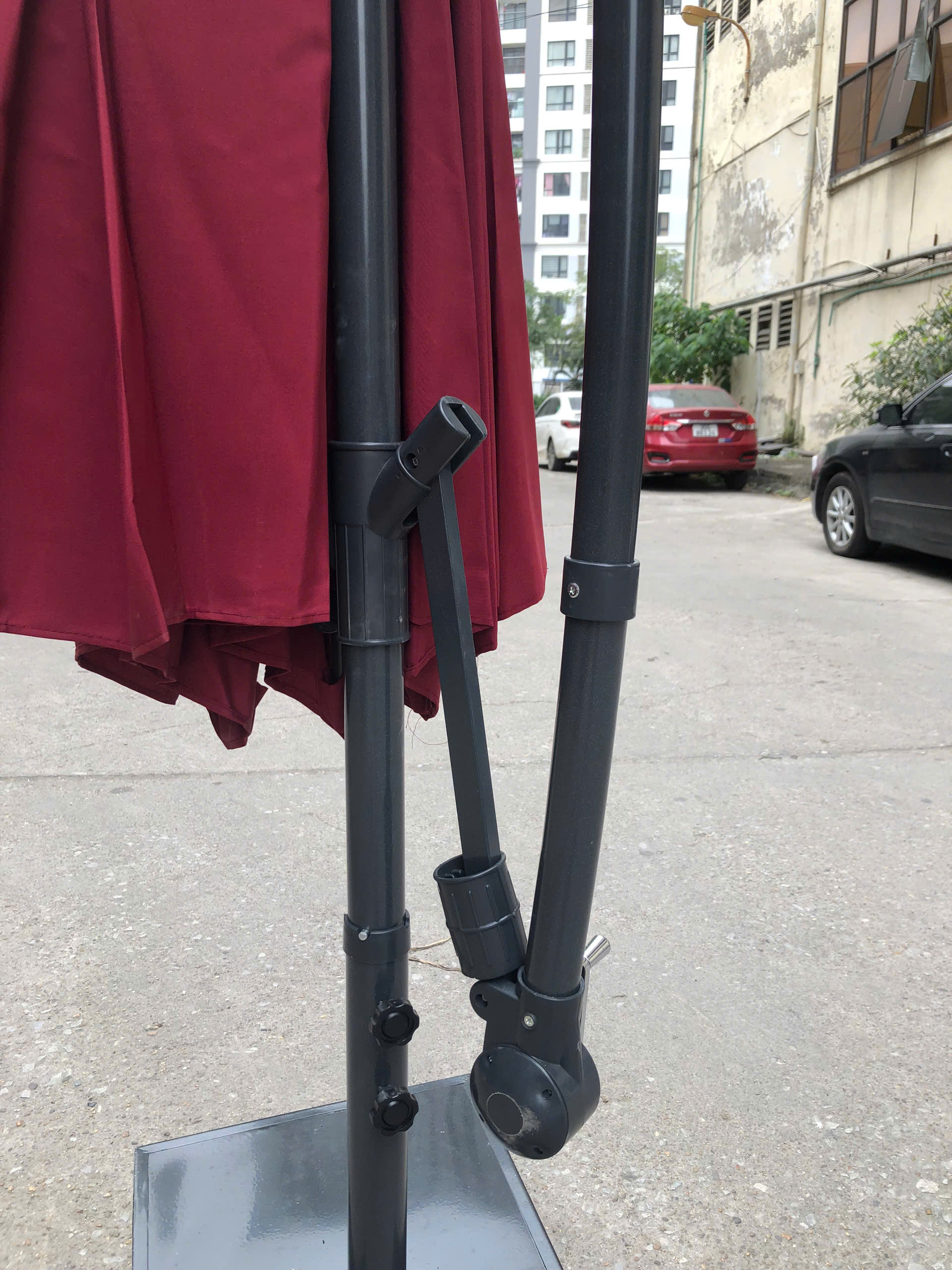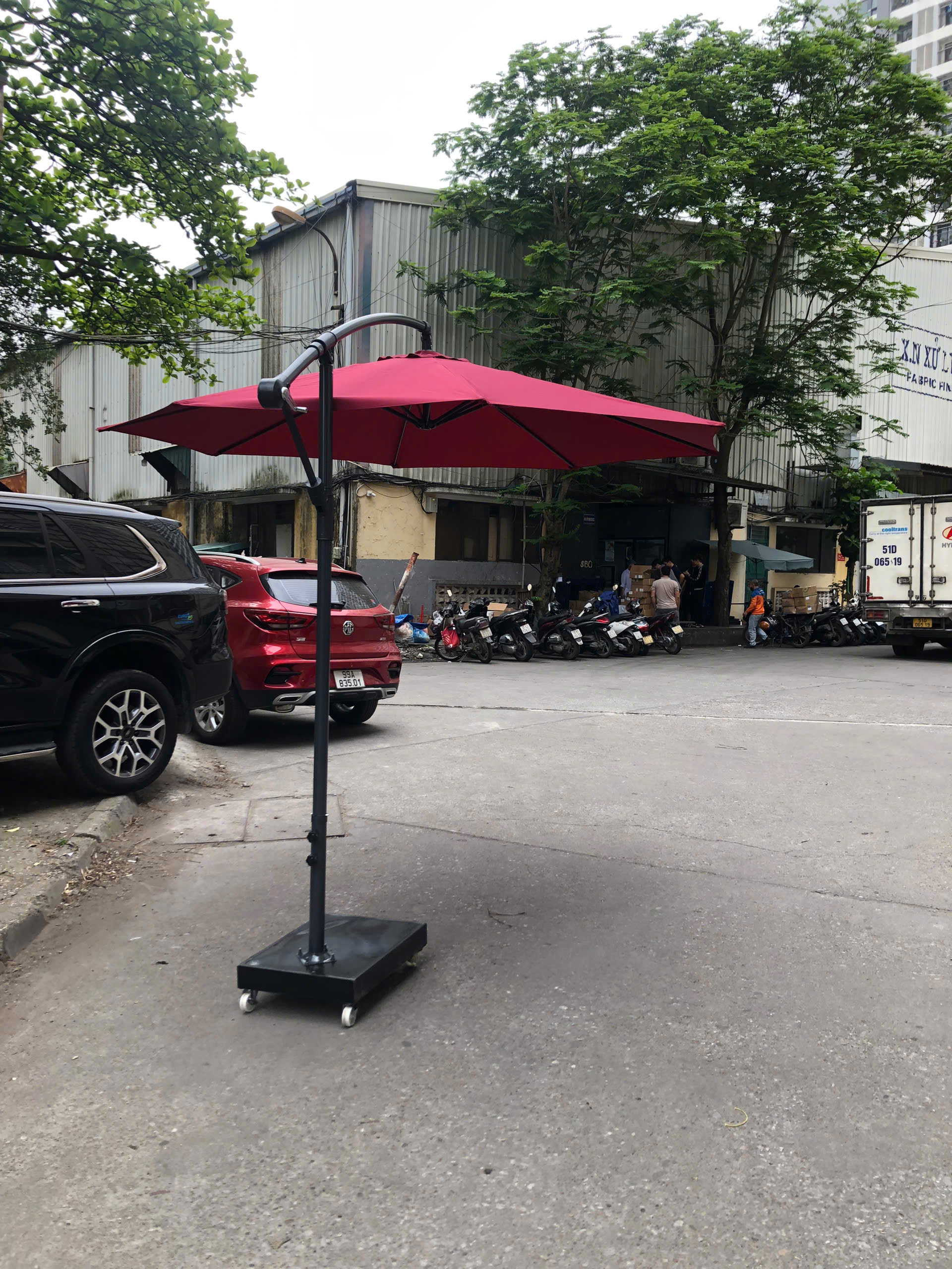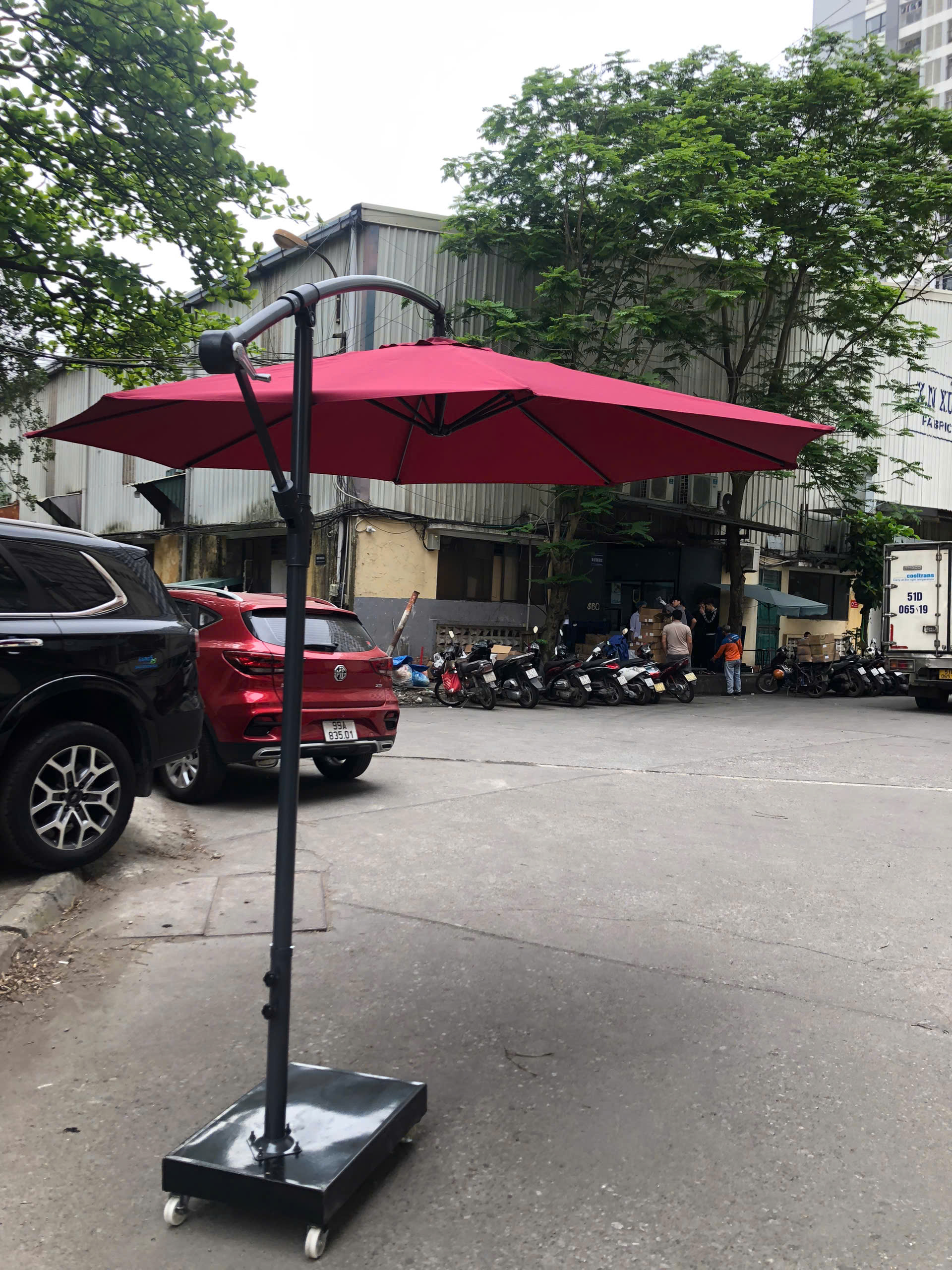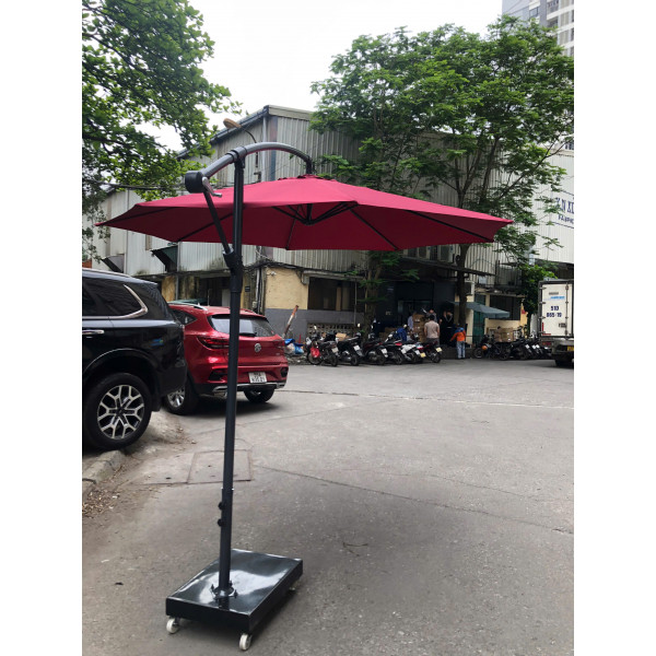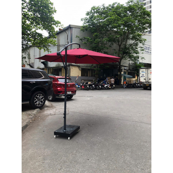 Đế ô bằng thép sơn tĩnh điện đổ bê tông, nặng 50 kg, giúp ô đứng vững chắc và an toàn. Đặc biệt, đế được trang bị 4 bánh xe linh hoạt, giúp di chuyển dễ dàng mà không cần tốn nhiều sức. Hệ thống bánh xe có khóa định vị giúp cố định ô chắc chắn khi sử dụng.