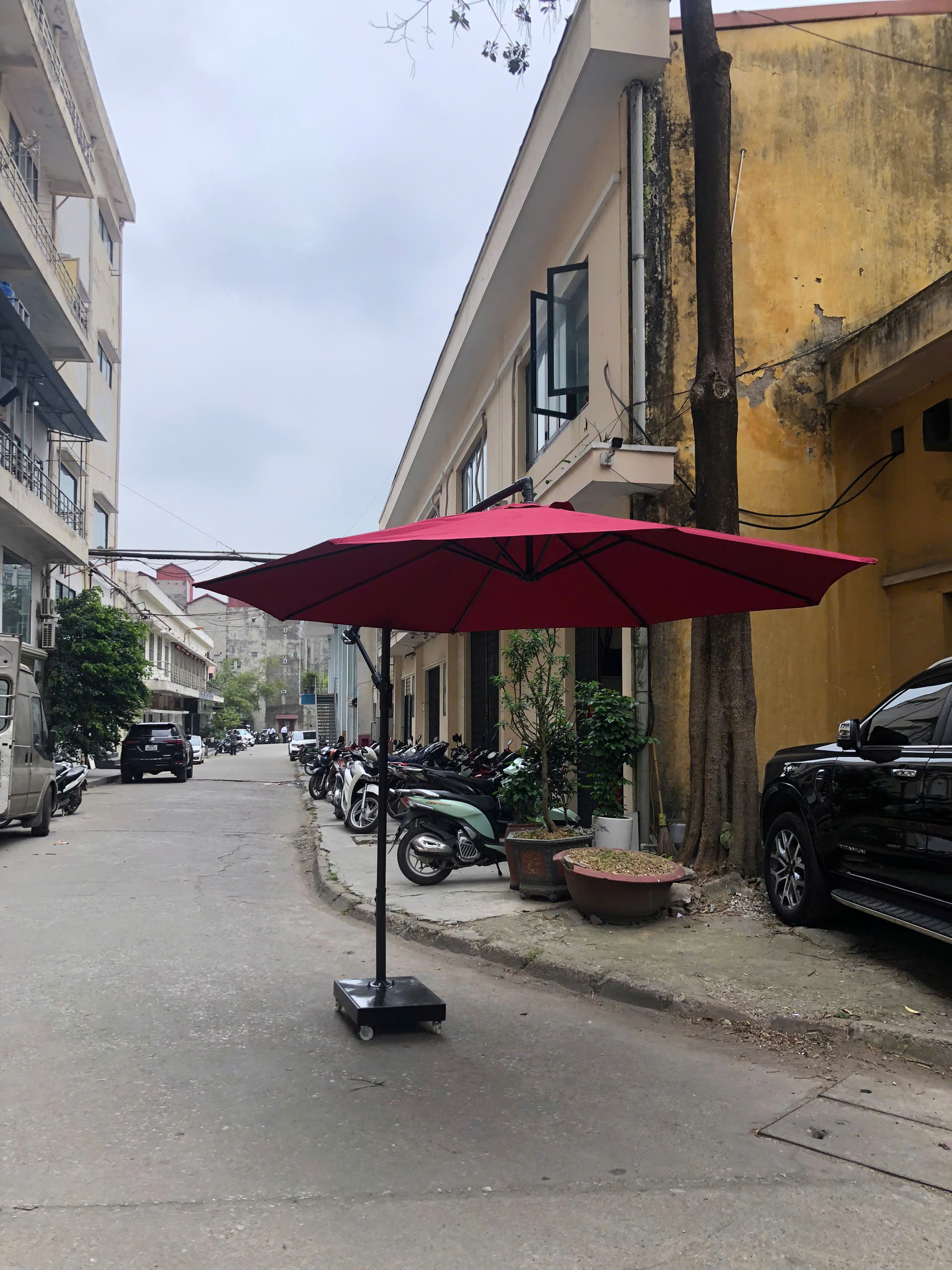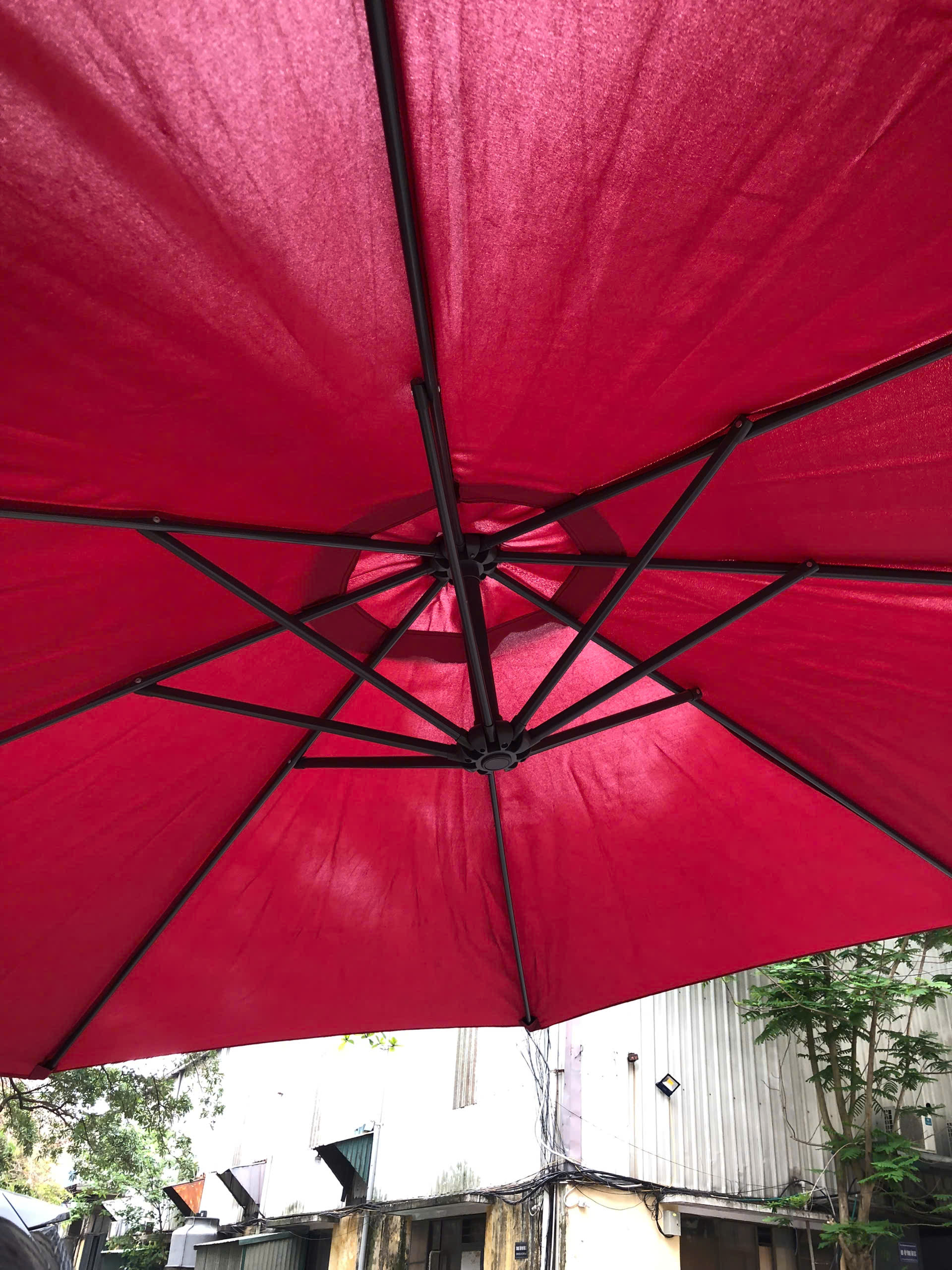 HTU-02-R sở hữu kiểu dáng tròn với đường kính ô 3 m, tạo không gian che phủ rộng rãi, thuận tiện bố trí bàn ghế bên dưới. Thiết kế cân đối, gọn gàng giúp tối ưu diện tích sử dụng và mang lại cảm giác thoáng đãng. Màu đỏ đô sang trọng làm nổi bật không gian ngoại thất, phù hợp với nhiều phong cách thiết kế từ hiện đại đến cổ điển.