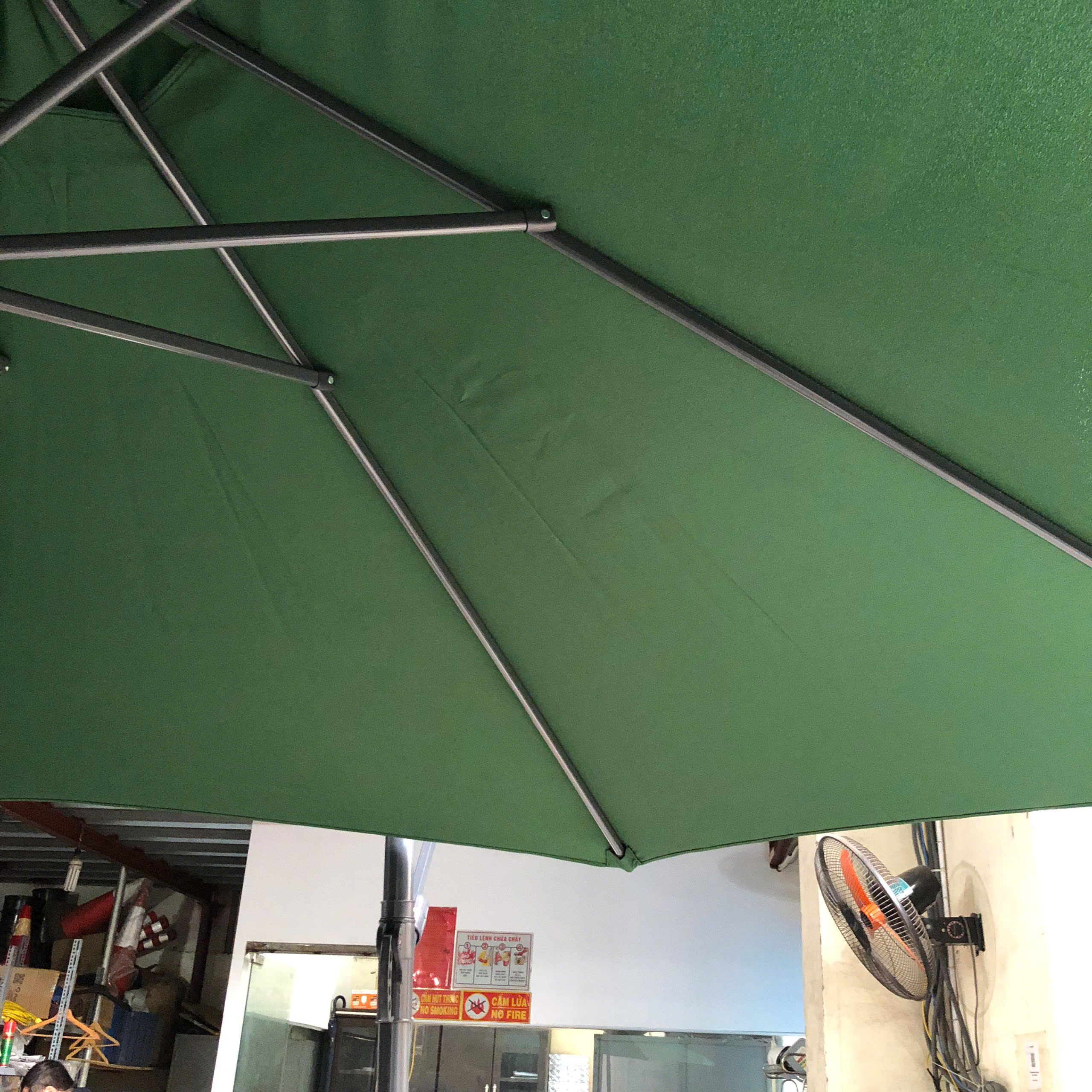 Với chiều cao hợp lý, ô mang đến không gian che phủ thoáng mát cho bàn ghế dưới ô. Thiết kế lệch tâm giúp thao tác dễ dàng và thuận tiện, phù hợp với nhiều vị trí đặt khác nhau trong khu vực ngoài trời.