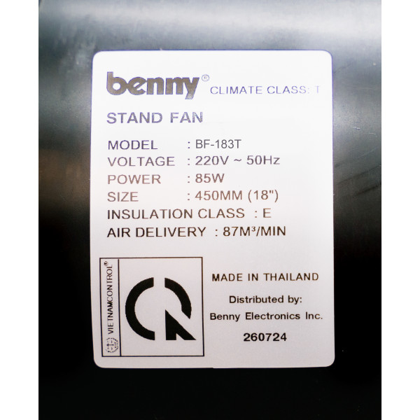 Quạt cây Benny BF-183 – Lựa chọn làm mát mạnh mẽ và bền bỉ cho mọi không gian
