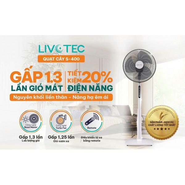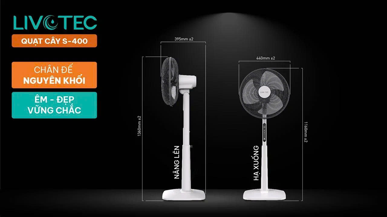 Không chỉ chú trọng đến hiệu suất làm mát, quạt cây Livotec S-400 còn được hoàn thiện với độ bền cao, đảm bảo sử dụng lâu dài trong điều kiện khí hậu nóng ẩm đặc trưng tại Việt Nam.