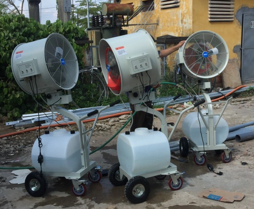 Thiết bị được trang bị hệ thống phun sương mạnh mẽ, giúp hạ nhiệt nhanh và tăng độ ẩm không khí.