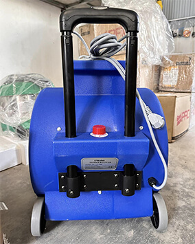 Máy có kích thước nhỏ gọn 540 x 460 x 555mm, trọng lượng chỉ 20kg, đi kèm tay kéo và bánh xe chắc chắn, cho phép di chuyển linh hoạt mà không tốn sức. Bên cạnh đó, dây điện dài 7m giúp máy hoạt động thuận tiện trong không gian rộng mà không bị giới hạn bởi vị trí ổ cắm.