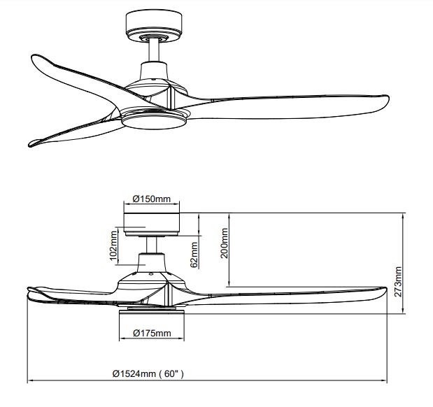 Thiết kế ba cánh quạt đơn giản nhưng tinh tế mang lại cảm giác nhẹ nhàng và sang trọng. Kiểu dáng gọn gàng giúp quạt trần vừa đảm bảo hiệu quả làm mát vừa đóng vai trò như một điểm nhấn thẩm mỹ cho trần nhà.