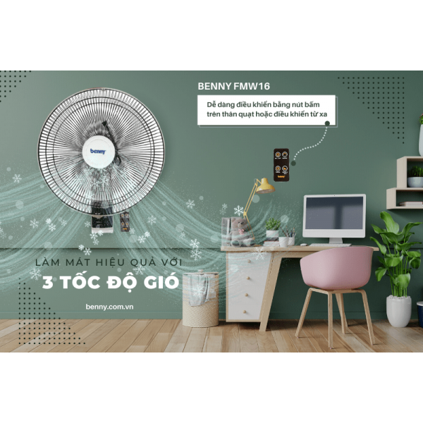 Quạt treo tường Benny FMW16 sẽ giúp không gian sống và làm việc của bạn luôn mát mẻ, thông thoáng và tiện nghi hơn trong những ngày thời tiết nóng bức