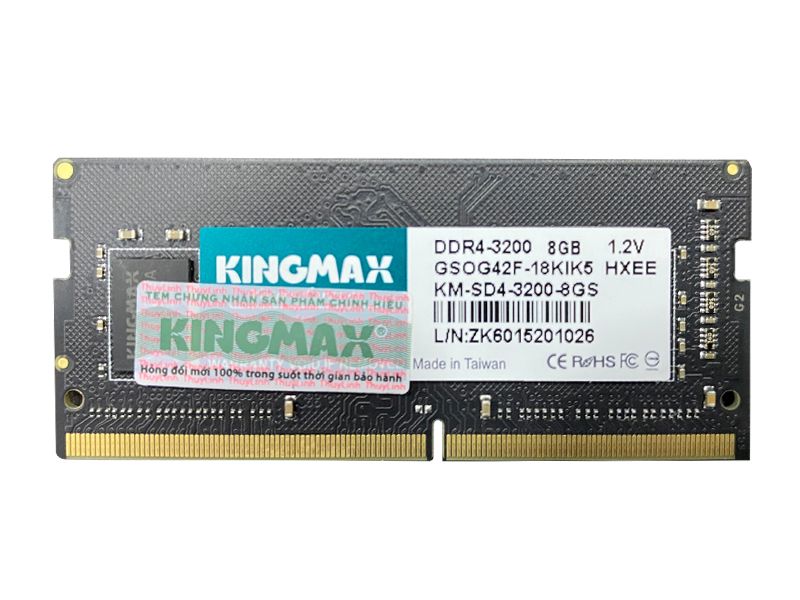 Kingmax là thương hiệu linh kiện máy tính quen thuộc, được người dùng đánh giá cao về độ ổn định và tuổi thọ sản phẩm. RAM laptop Kingmax được sản xuất theo tiêu chuẩn nghiêm ngặt, đảm bảo khả năng tương thích tốt với nhiều dòng laptop sử dụng nền tảng Intel và AMD, mang lại sự an tâm trong quá trình sử dụng lâu dài.