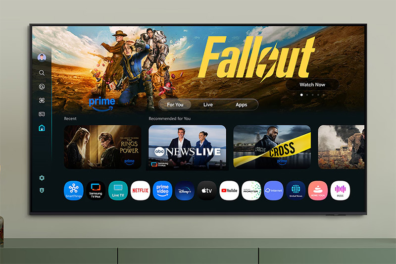 Tivi sử dụng hệ điều hành Tizen độc quyền của Samsung, nổi tiếng với giao diện trực quan, mượt mà và dễ sử dụng. Người dùng có thể nhanh chóng truy cập các ứng dụng phổ biến như YouTube, Netflix, trình duyệt web và nhiều nền tảng giải trí trực tuyến khác. Tivi hỗ trợ kết nối WiFi 5, LAN và Bluetooth 5.3, giúp việc kết nối internet, chia sẻ nội dung và kết nối thiết bị ngoại vi trở nên nhanh chóng và ổn định.