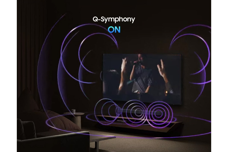 Samsung UA50U8500FKXXV được trang bị hệ thống loa 2 kênh với tổng công suất 20W, đủ đáp ứng nhu cầu nghe cơ bản trong không gian gia đình. Các công nghệ âm thanh tiên tiến như Object Tracking Sound Lite (OTS Lite) giúp âm thanh di chuyển theo hình ảnh trên màn hình, Adaptive Sound tự động điều chỉnh âm thanh theo nội dung đang phát và Q-Symphony cho phép đồng bộ loa tivi với loa soundbar Samsung, tạo nên không gian âm thanh bao trùm và sống động hơn.