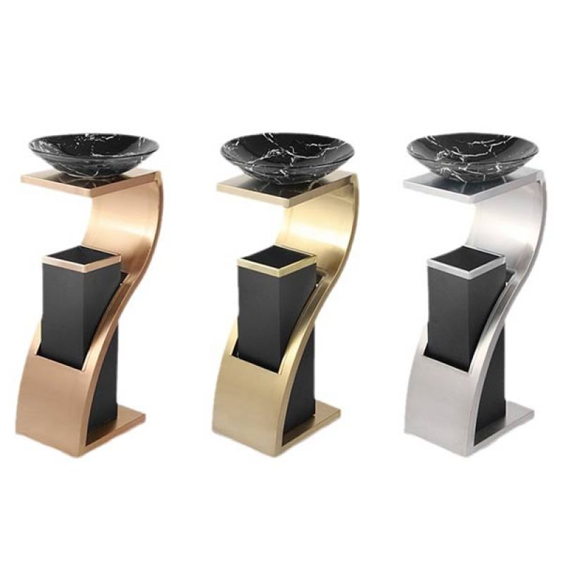 Thùng rác chữ Z inox màu đồng có khay thủy tinh ETKZI00 là sự kết hợp hoàn hảo giữa thiết kế hiện đại và vẻ đẹp cổ điển sang trọng, mang đến điểm nhấn nổi bật cho không gian sảnh khách sạn, nhà hàng hay tòa nhà cao cấp. Sản phẩm không chỉ phục vụ nhu cầu sử dụng thực tế mà còn thể hiện gu thẩm mỹ tinh tế và chuyên nghiệp trong từng chi tiết.