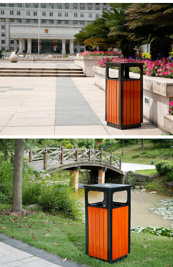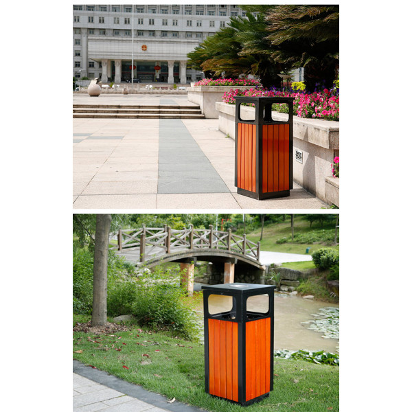 | Tên sản phẩm | Thùng rác giả gỗ khung thép phun sơn vuông có gạt tàn HTSOD-37 |
