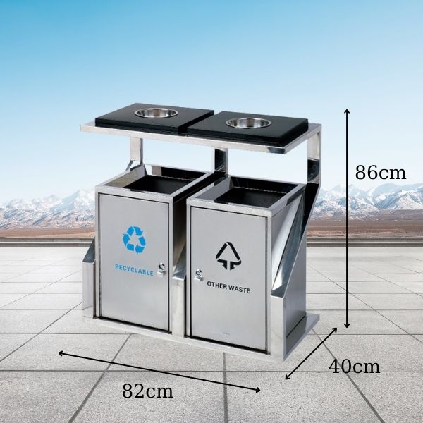 | Loại sản phẩm | Thùng rác inox 2 ngăn có gạt tàn |
