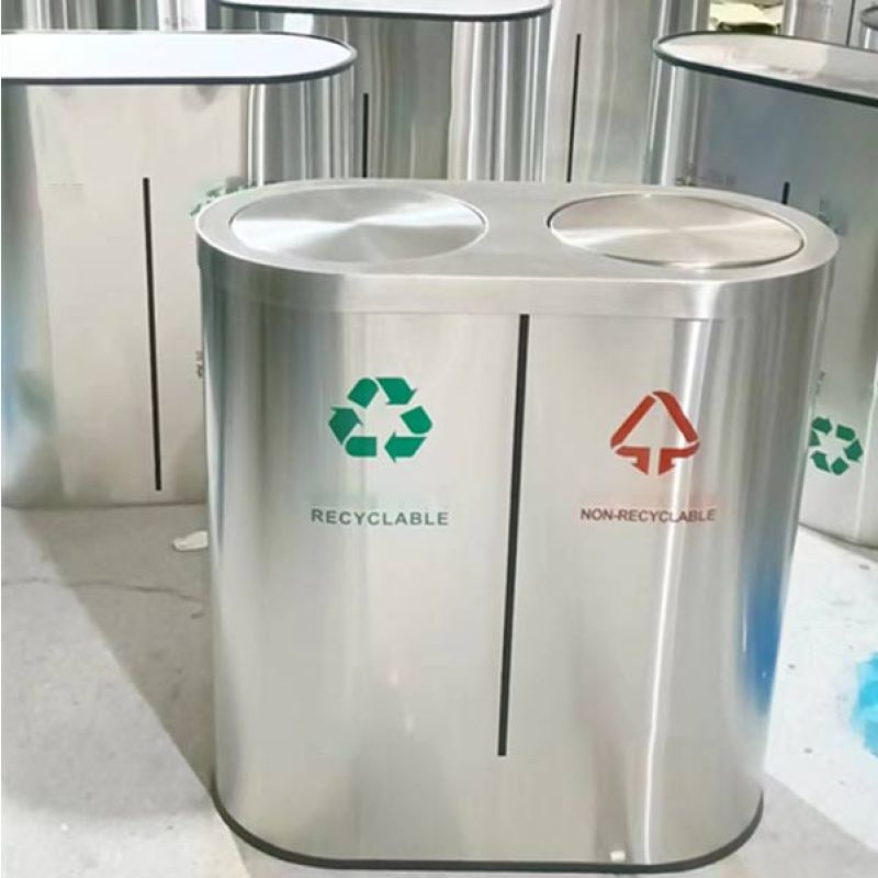Sản phẩm gồm 2 ngăn riêng biệt, cho phép phân loại rác hữu cơ và vô cơ một cách khoa học. Thiết kế này thuận tiện cho việc thu gom và xử lý rác, đồng thời góp phần nâng cao ý thức bảo vệ môi trường trong không gian công cộng.