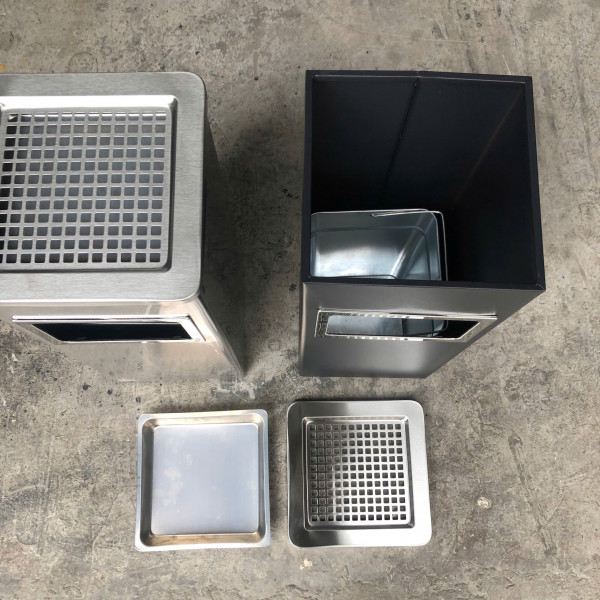 | Tên sản phẩm | Thùng rác inox vuông có gạt tàn |