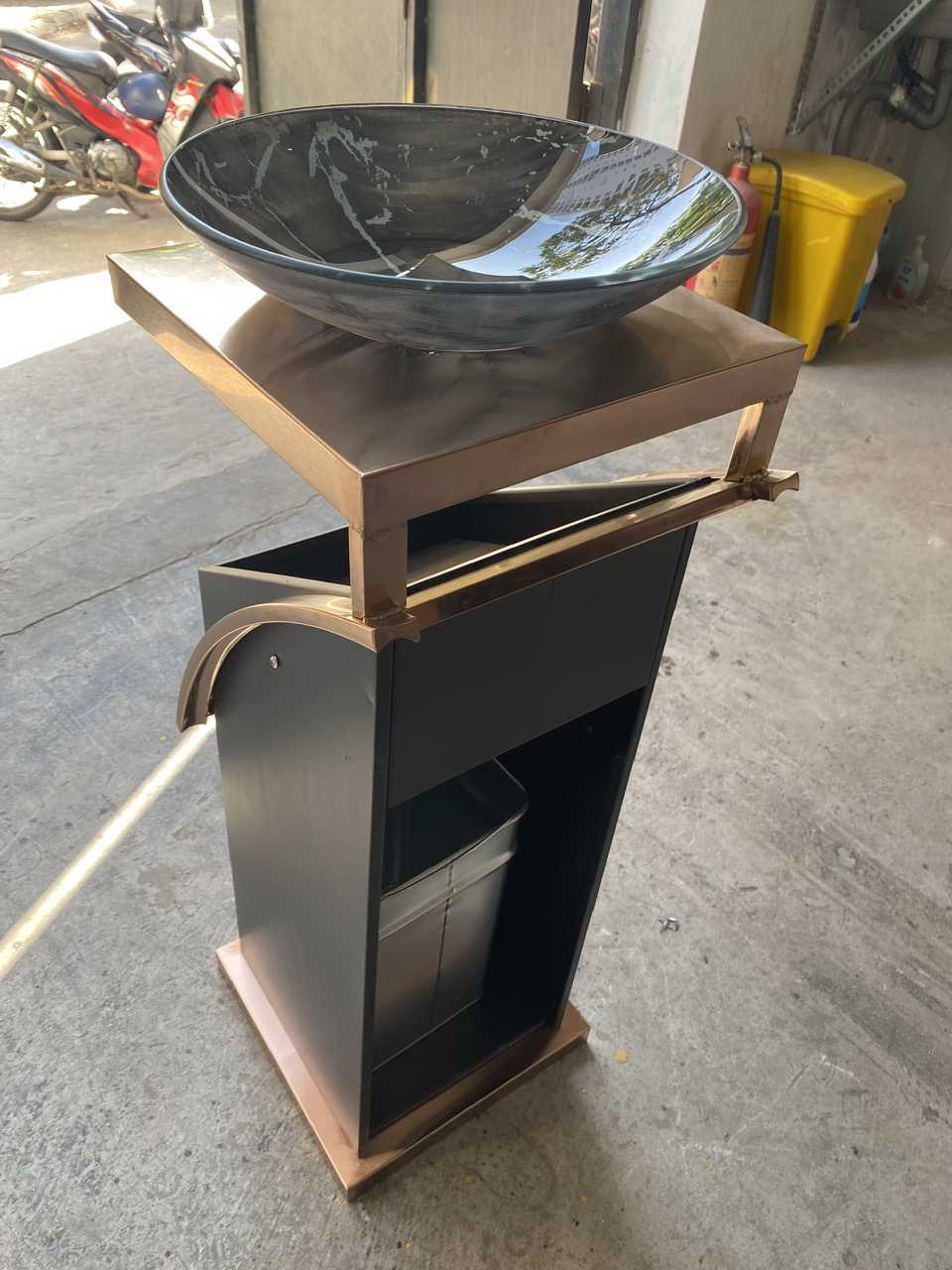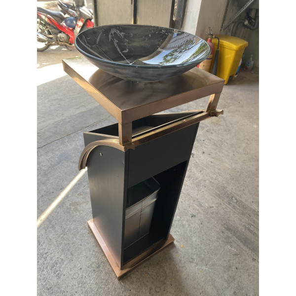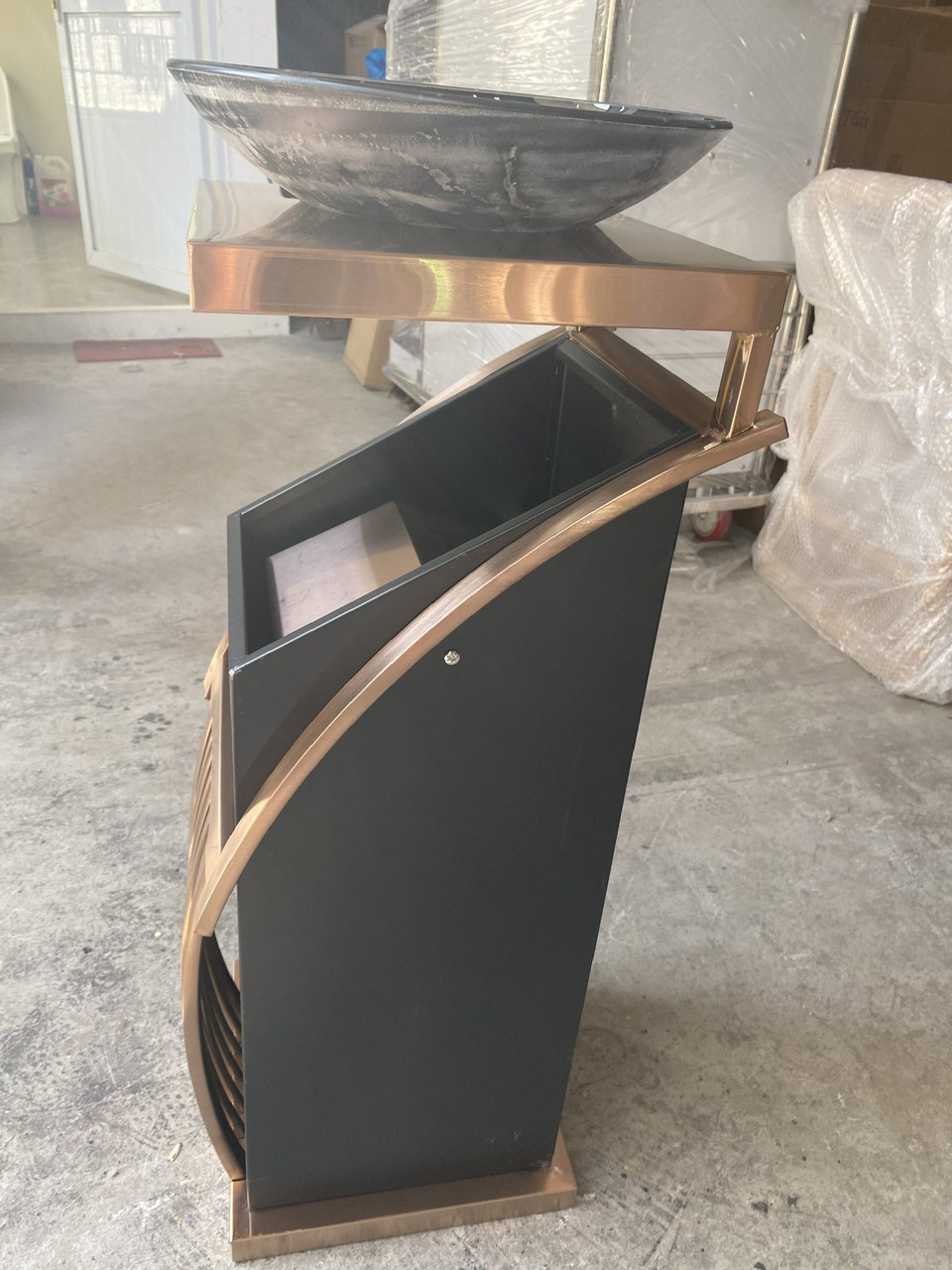 Tên sản phẩm | Thùng rác sảnh đồng có gạt tàn thủy tinh |