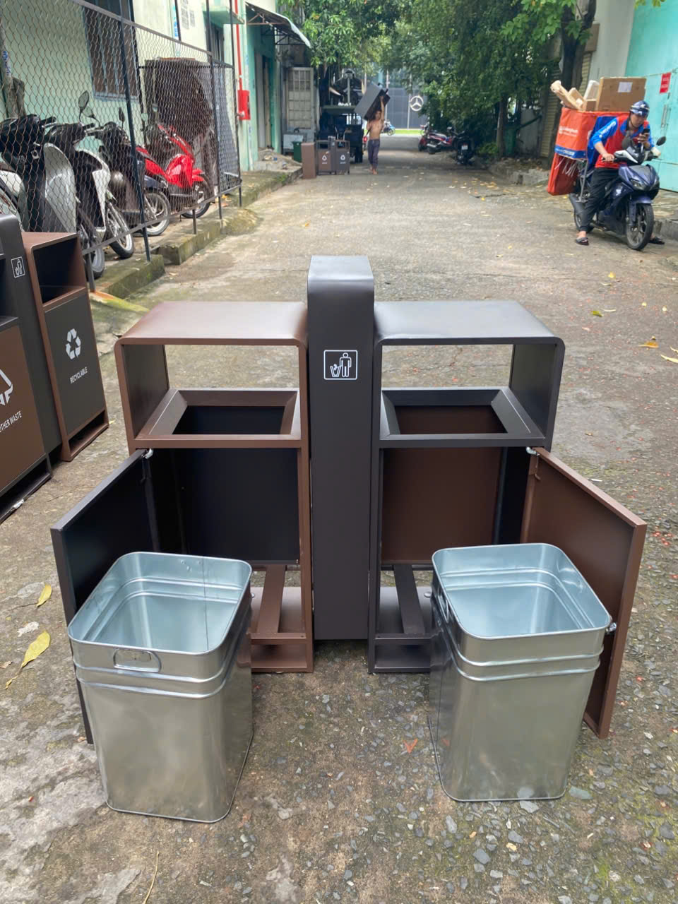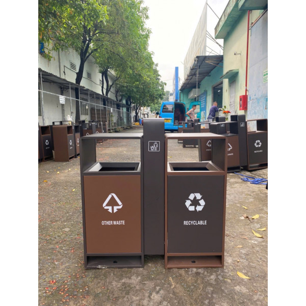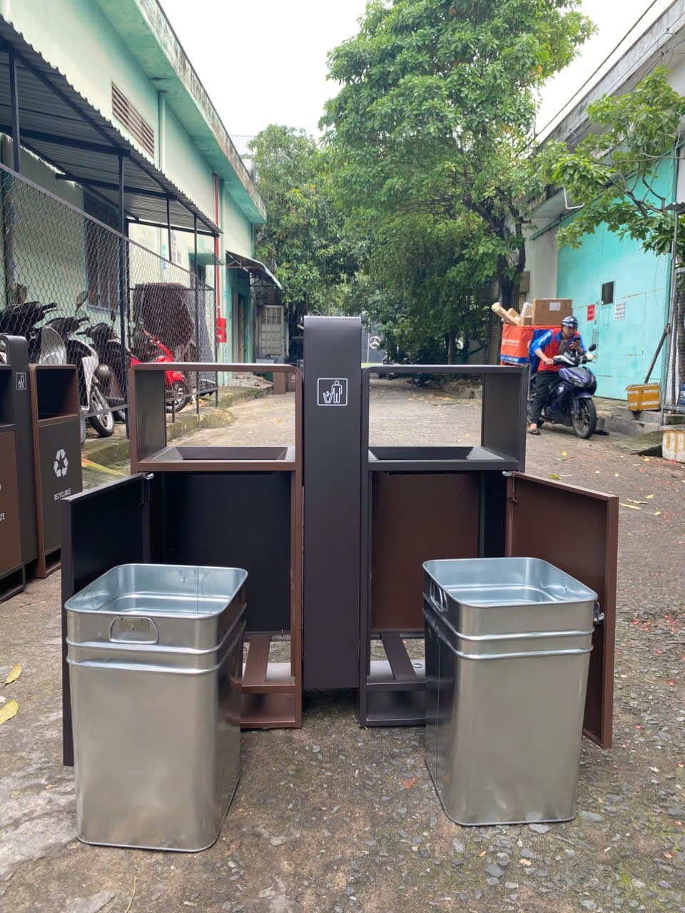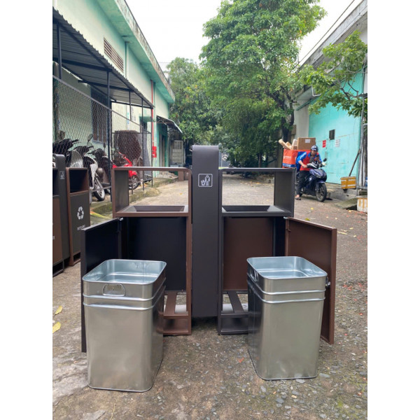 | Tên sản phẩm | Thùng rác sơn màu 2 ngăn có gạt tàn |