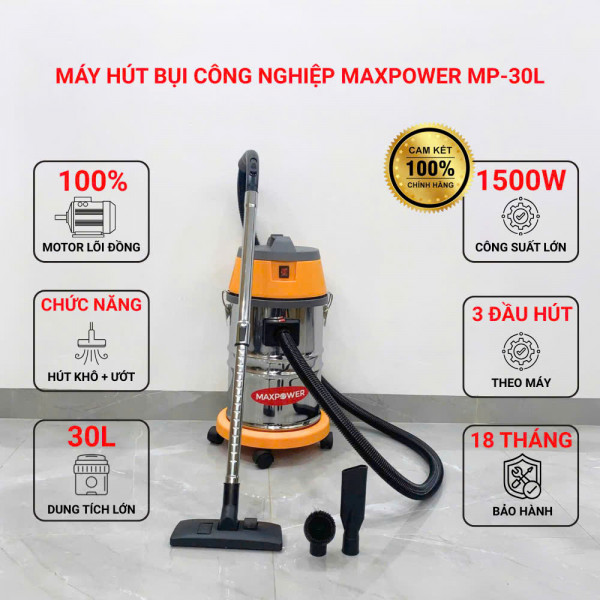 MaxPower MP-30L với công suất mạnh mẽ 1500W, dung tích 30L cùng mô tơ 100% lõi đồng, là giải pháp lý tưởng cho việc hút bụi khô và hút nước trong các nhà xưởng, văn phòng hay công trình. Thiết kế nhẹ chỉ 10kg, đi kèm đầy đủ phụ kiện tiện dụng, dây điện 5m, MaxPower MP-30L mang đến hiệu suất cao, vận hành bền bỉ và bảo hành 18 tháng, đảm bảo sự yên tâm cho người sử dụng.