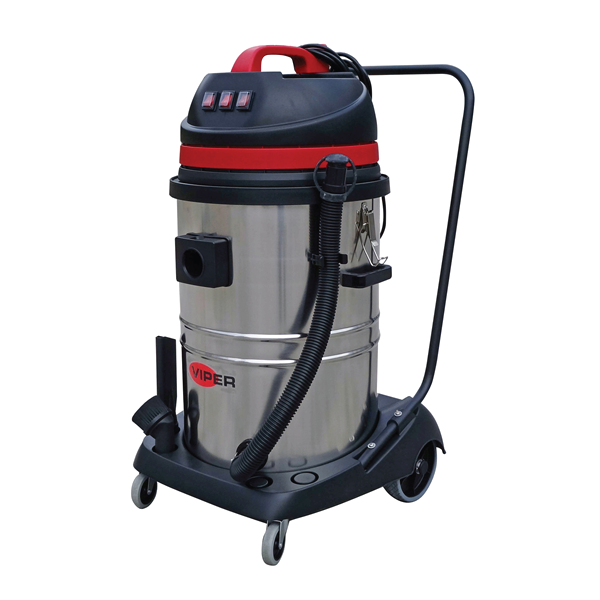 Viper LSU375 sở hữu 3 motor 3000W, thùng inox 75L, lực hút 2280mmH₂O. Máy chuyên dùng cho nhà máy, khu công nghiệp lớn, có ống xả nước tiện lợi.