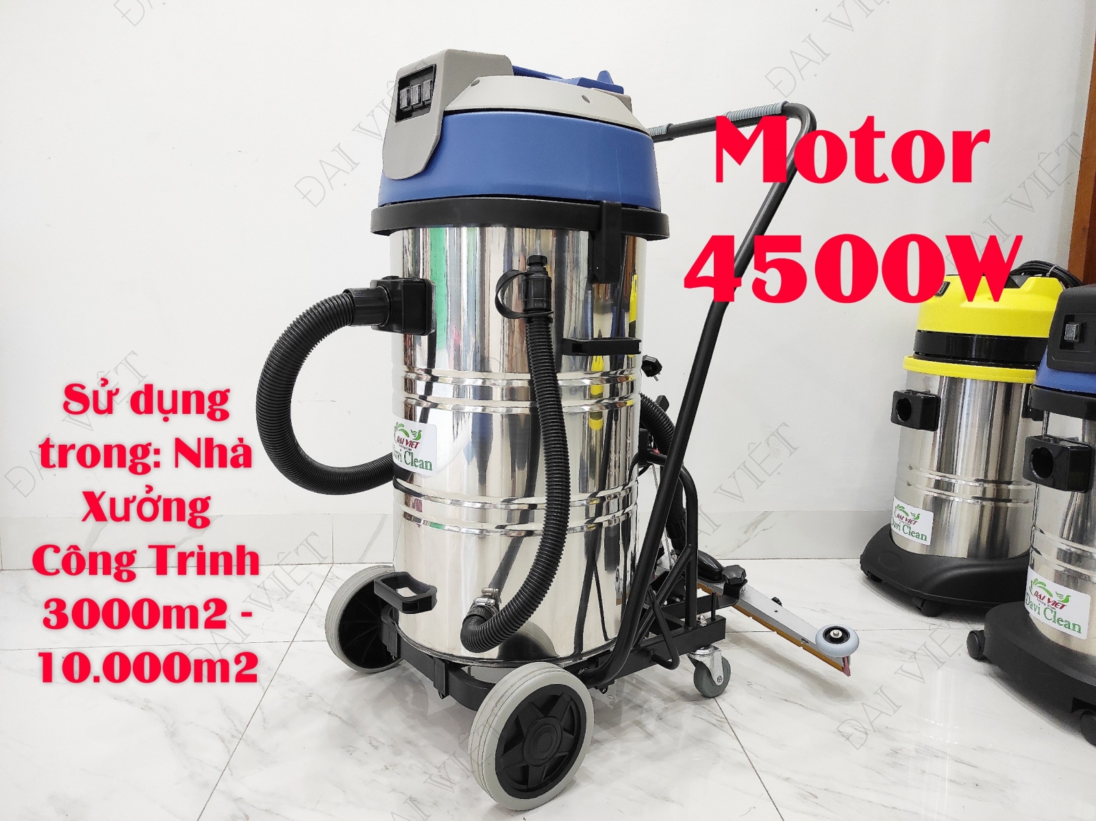 Máy hút bụi công nghiệp 4500W công suất lớn đặc biệt phù hợp cho các khu vực có diện tích rộng từ 500m² trở lên, nơi cần vệ sinh liên tục với khối lượng bụi bẩn nhiều. Cụ thể: