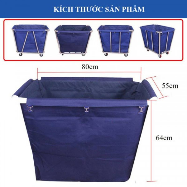 Túi có kích thước 80 x 55 x 64 cm, mang đến không gian chứa lớn, dễ dàng chứa đựng số lượng lớn chăn ga, gối, khăn tắm hoặc quần áo giặt là. Nhờ dung tích chứa rộng rãi, túi phù hợp cho những đơn vị có khối lượng đồ vải cần xử lý nhiều trong ngày, giúp tiết kiệm thời gian và công sức cho nhân viên.