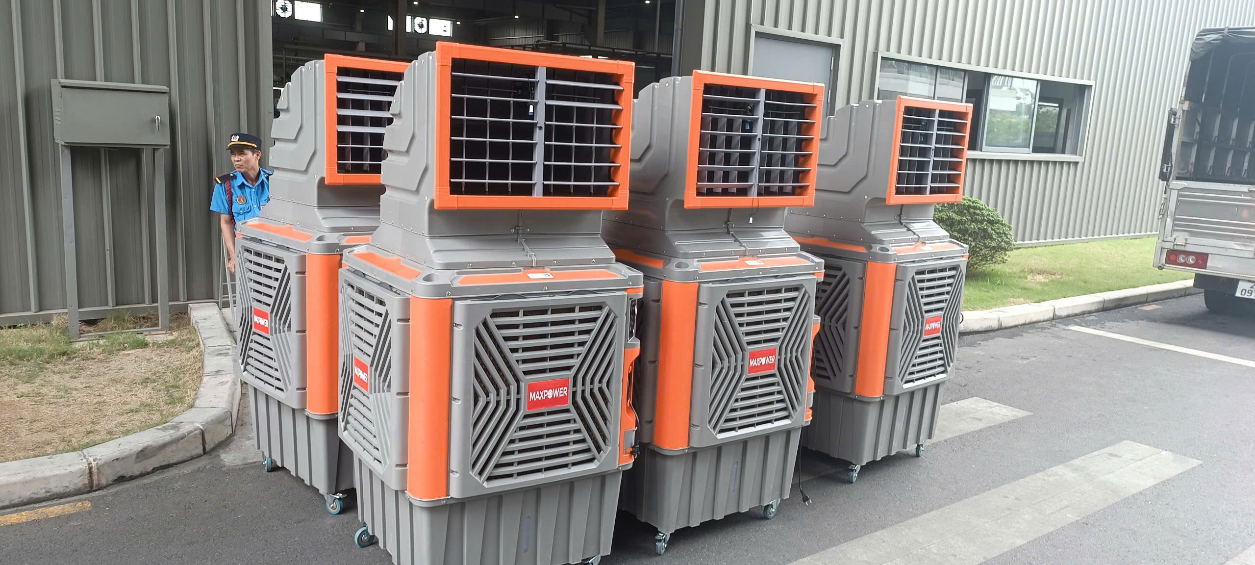 Trong môi trường công nghiệp có máy móc tỏa nhiệt và không gian rộng, việc làm mát không chỉ tạo sự thoải mái cho công nhân mà còn góp phần nâng cao năng suất lao động. Quạt hơi nước khủng long MaxPower QB-18B được nhiều nhà xưởng, khu sản xuất, kho bãi lựa chọn nhờ công suất phun sương mạnh kết hợp với dàn cánh lớn, đảm bảo luồng gió mát lan tỏa đều khắp khu vực làm việc.
