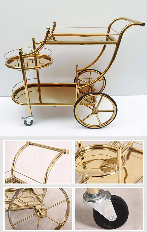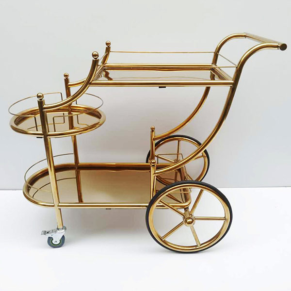 Xe phục vụ HTWY-48 được phủ lớp mạ vàng cao cấp, mang lại vẻ ngoài lấp lánh và tinh tế. Các đường nét bo cong mềm mại, hài hòa với tổng thể hiện đại, tạo nên cảm giác quý phái và chuyên nghiệp. Màu vàng ánh kim phản chiếu ánh sáng tự nhiên, giúp không gian trở nên nổi bật và thu hút. Đây là lựa chọn lý tưởng cho các sự kiện, buổi tiệc hoặc không gian trưng bày cao cấp.