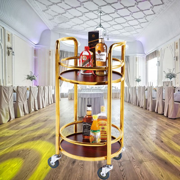 Xe phục vụ rượu Inox mạ vàng tròn HTFW-106A – Sang trọng và đẳng cấp trong từng chi tiết