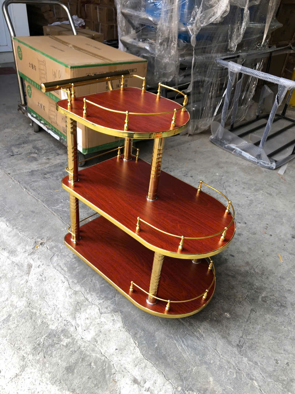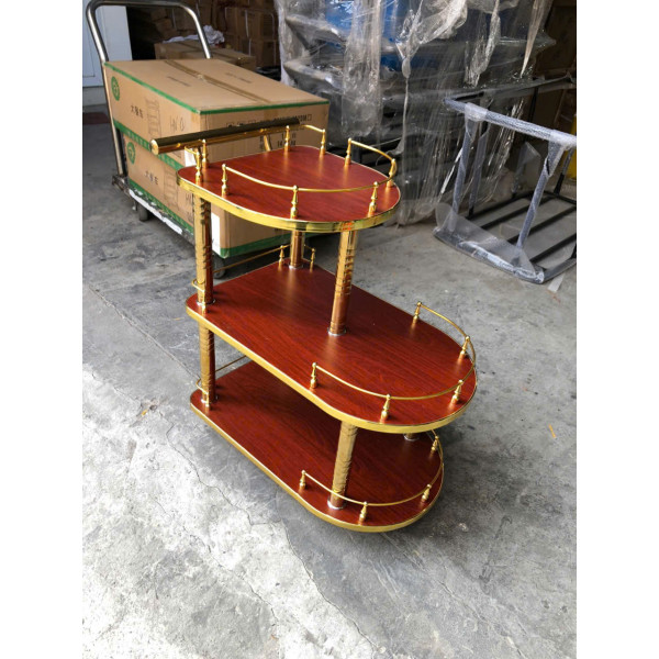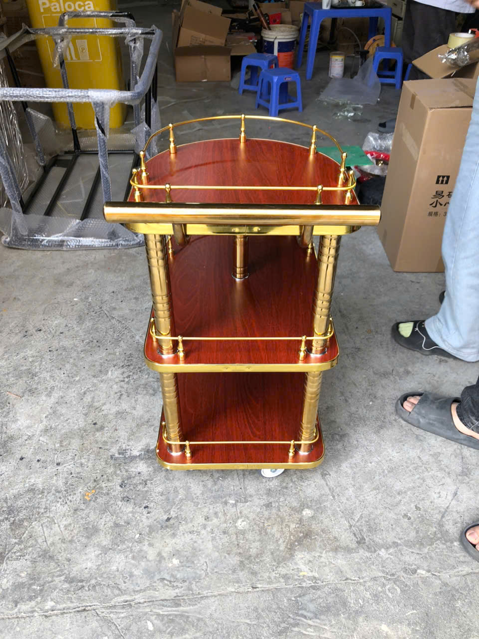XE PHỤC VỤ RƯỢU KHUNG INOX VÀNG MẶT GỖ HTFW-42 – SANG TRỌNG, TIỆN LỢI VÀ TINH TẾ